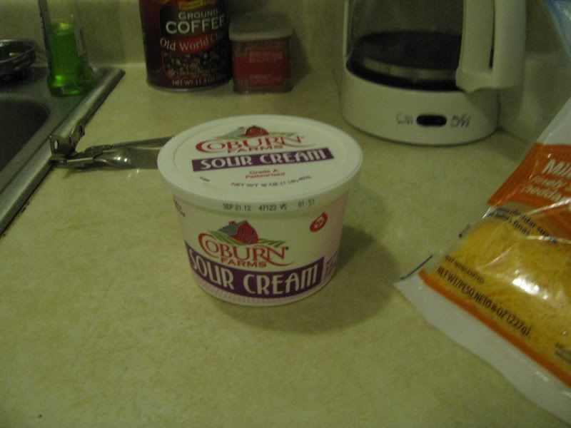 Oh yeah, and the sour cream. We mustn't forget the sour cream. My only heartbreak was I didn't have any bacon.